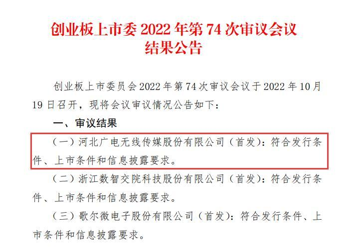 2022年10月19日,無線傳媒創(chuàng)業(yè)板首發(fā)成功過會(huì)。