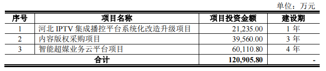 具體而言,本次募投項(xiàng)目中河北IPTV集成播控平臺(tái)系統(tǒng)化改造升級(jí)項(xiàng)目的實(shí)施將進(jìn)一步強(qiáng)化智能化內(nèi)容運(yùn)營,并實(shí)現(xiàn)高效的內(nèi)容智能審核;筑就播控系統(tǒng)邊界防護(hù)能力,加強(qiáng)網(wǎng)絡(luò)管理手段,保障網(wǎng)絡(luò)安全。內(nèi)容版權(quán)采購項(xiàng)目的實(shí)施將有利于持續(xù)提升公司的內(nèi)容競(jìng)爭(zhēng)力,為公司業(yè)務(wù)長(zhǎng)期發(fā)展帶來良性循環(huán)。智能超媒業(yè)務(wù)云平臺(tái)項(xiàng)目的實(shí)施將有利于培育平臺(tái)型經(jīng)濟(jì)和打造區(qū)域新型主流媒體機(jī)構(gòu),提高企業(yè)創(chuàng)新能力與市場(chǎng)競(jìng)爭(zhēng)力,培植新的業(yè)務(wù)增長(zhǎng)點(diǎn)。