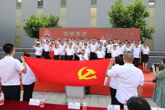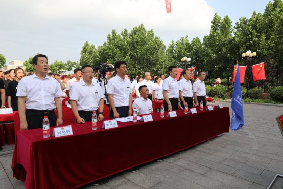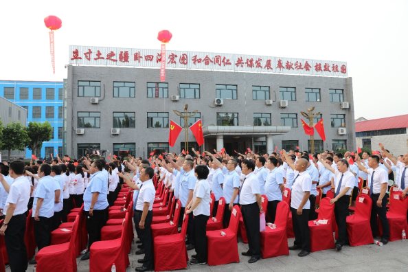 集團公司董事長桑海明帶領全體共產黨員向黨旗宣誓。