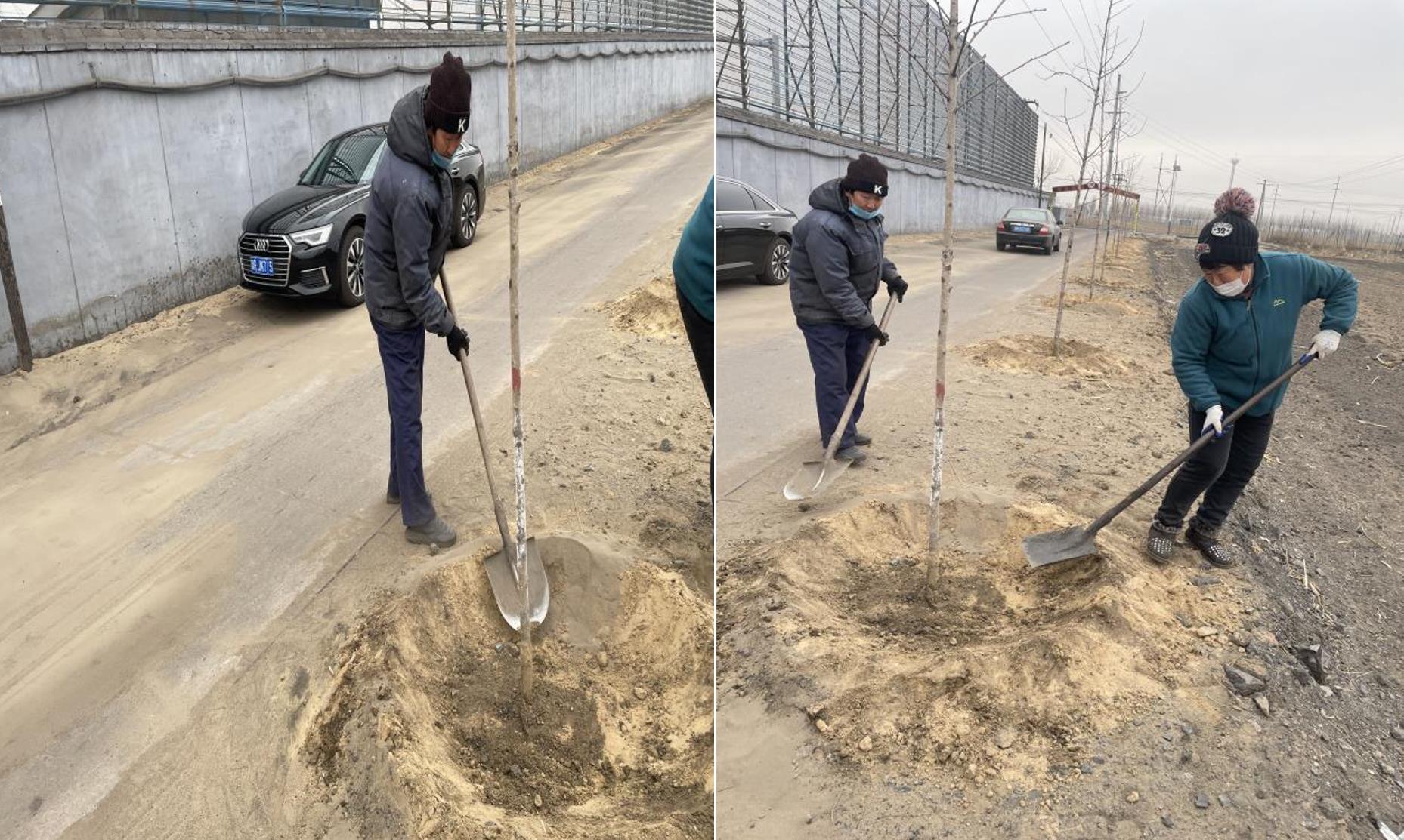 安環辦對廠區內外進行綠化準備排查,協調后勤部人員對廠區內外進行挖坑、澆樹。
