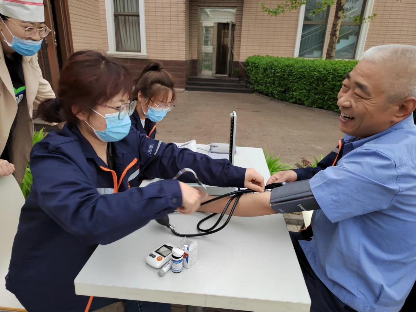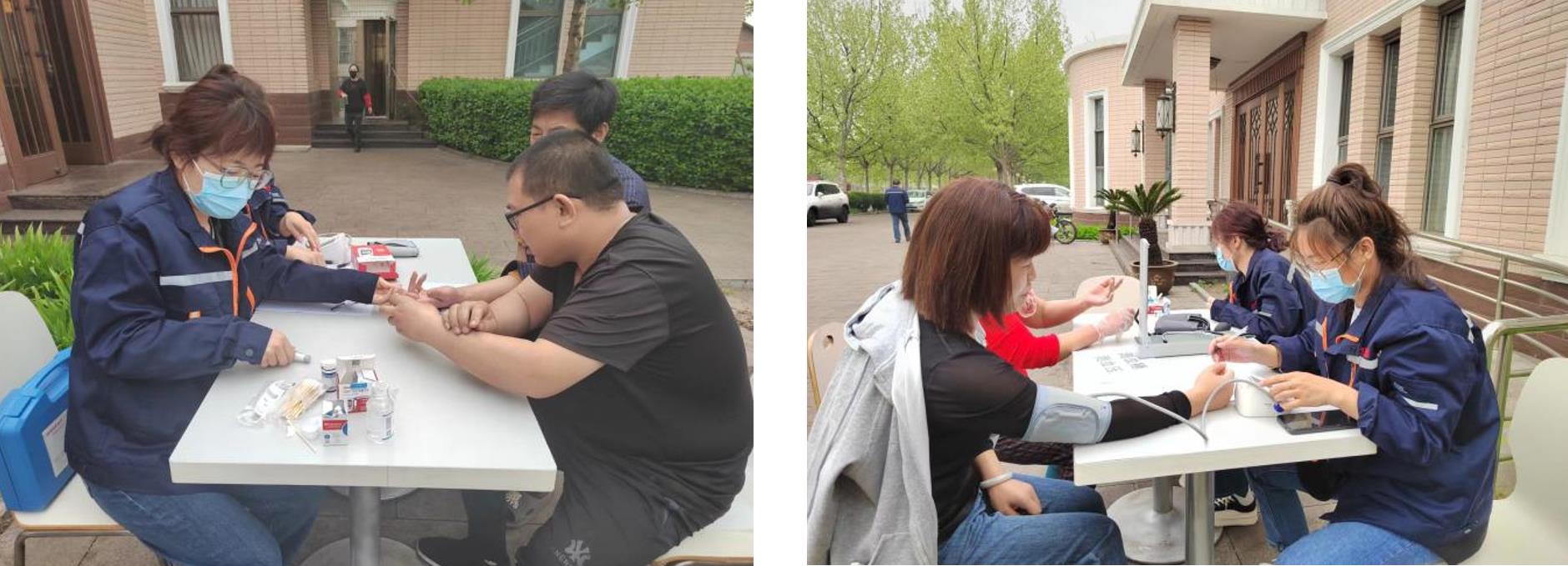 健康的身體是我們迎接工作挑戰的基礎,更是享受美好生活的首要前提。隨著近日新冠疫情反反復復,考慮封控在廠職工就醫不便,從而會忽略自身身體健康問題。后勤部積極向一線生產單位靠上去主動作為,于4月24日早6點組織封控在廠人員在公司食堂門口檢測血糖和血壓。