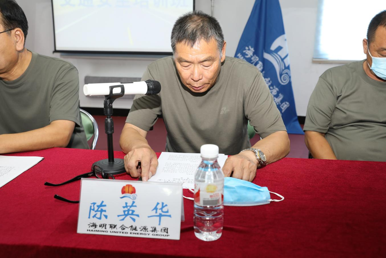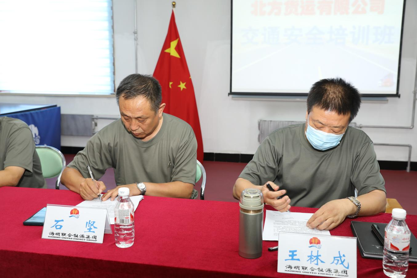 培訓中,安委辦全體人員和200多名北方貨運駕駛員,全體起立,共同背誦“海明人精神”,隨后,集中觀看了交通安全警示教育片;通報了北方貨運有限公司“6.20” 和“7.09”兩起交通責任事故,分析了事故原因,總結了事故教訓,明確了事故責任;北方貨運有限公司總經理石堅同志,在深入查找本單位交通安全管理上存在的突出問題同時,對今后貨運交通安全工作進行了安排部署;為強化責任,北方貨運有限公司與集團公司安委會、各貨運車隊隊長與北方貨運有限公司總經理、全體貨運駕駛員與各貨運車隊隊長分層次簽定了《交通安全責任狀》;2名貨運車隊隊長和2名貨運駕駛員代表進行了認真表態發言;全體貨運駕駛員面向國旗和公司旗幟進行了集體安全宣誓!