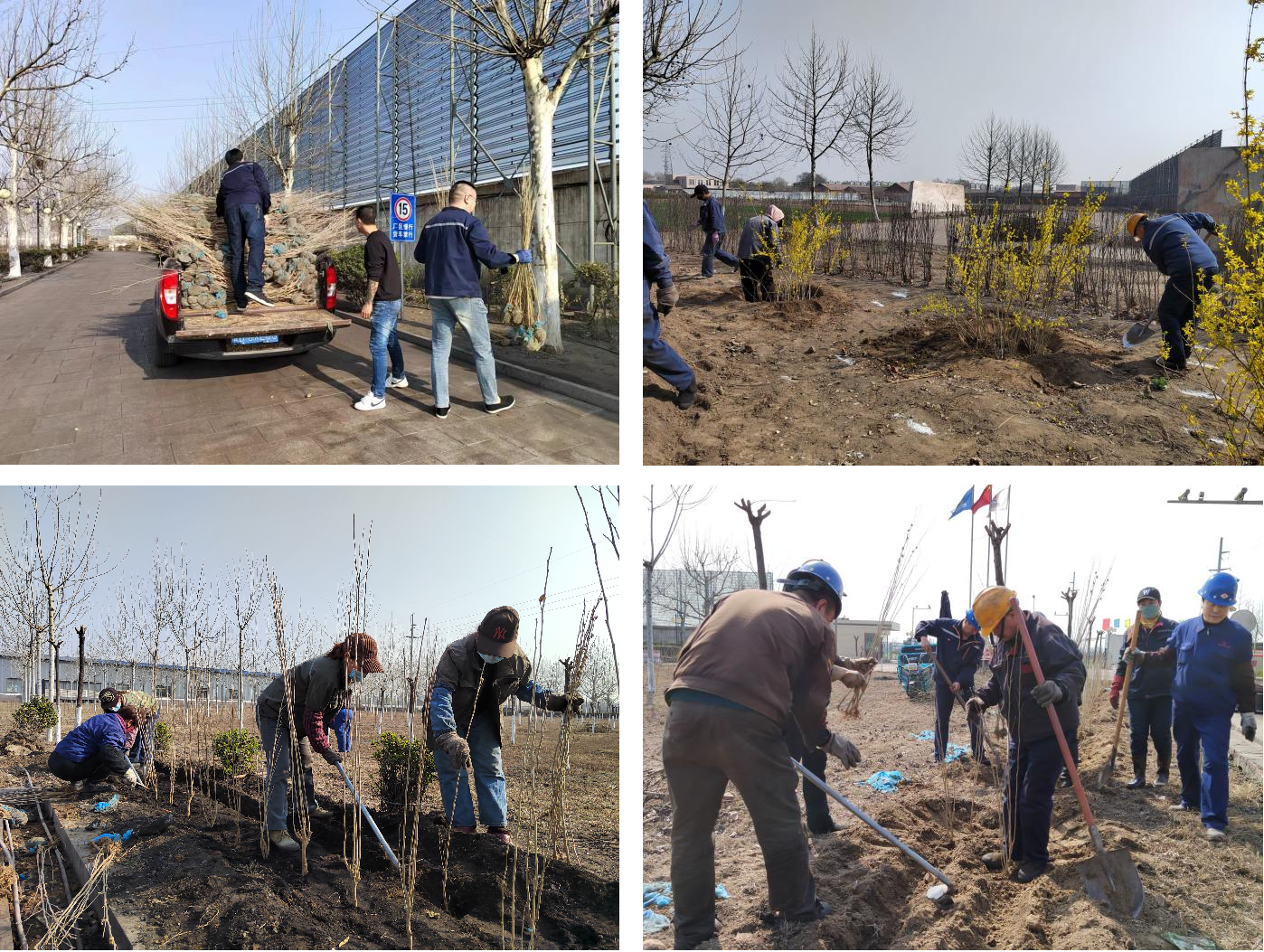 大家種下了一棵棵綠色的希望,看著一顆顆的樹苗屹立在春風中,活動的現場到處回蕩著員工們的歡聲笑語。隨著廠區建設和規劃的逐步完善,廠區內,道路邊,員工們體驗著親自動手綠化、美化家園的快樂。人多力量大,大家有的揮鍬鏟土,有的扶苗填坑,有的踏土夯苗,有的澆灌樹苗,植樹現場熱火朝天。員工們個個干勁十足,盡管工衣和鞋子濺上很多泥漿,臉上卻洋溢著勞動的喜悅。經過全體員工的辛勤勞動和團結協作,一排排小樹開始在廠區內幸福地沐浴陽光,吮吸春風。通過這次植樹活動,提升了全體員工保護生態環境的思想意識和社會責任感,大家紛紛表示要努力做好生態文明理念的踐行者和宣傳員,讓我們的公司環境進一步提升,讓我們的生活更加美好。