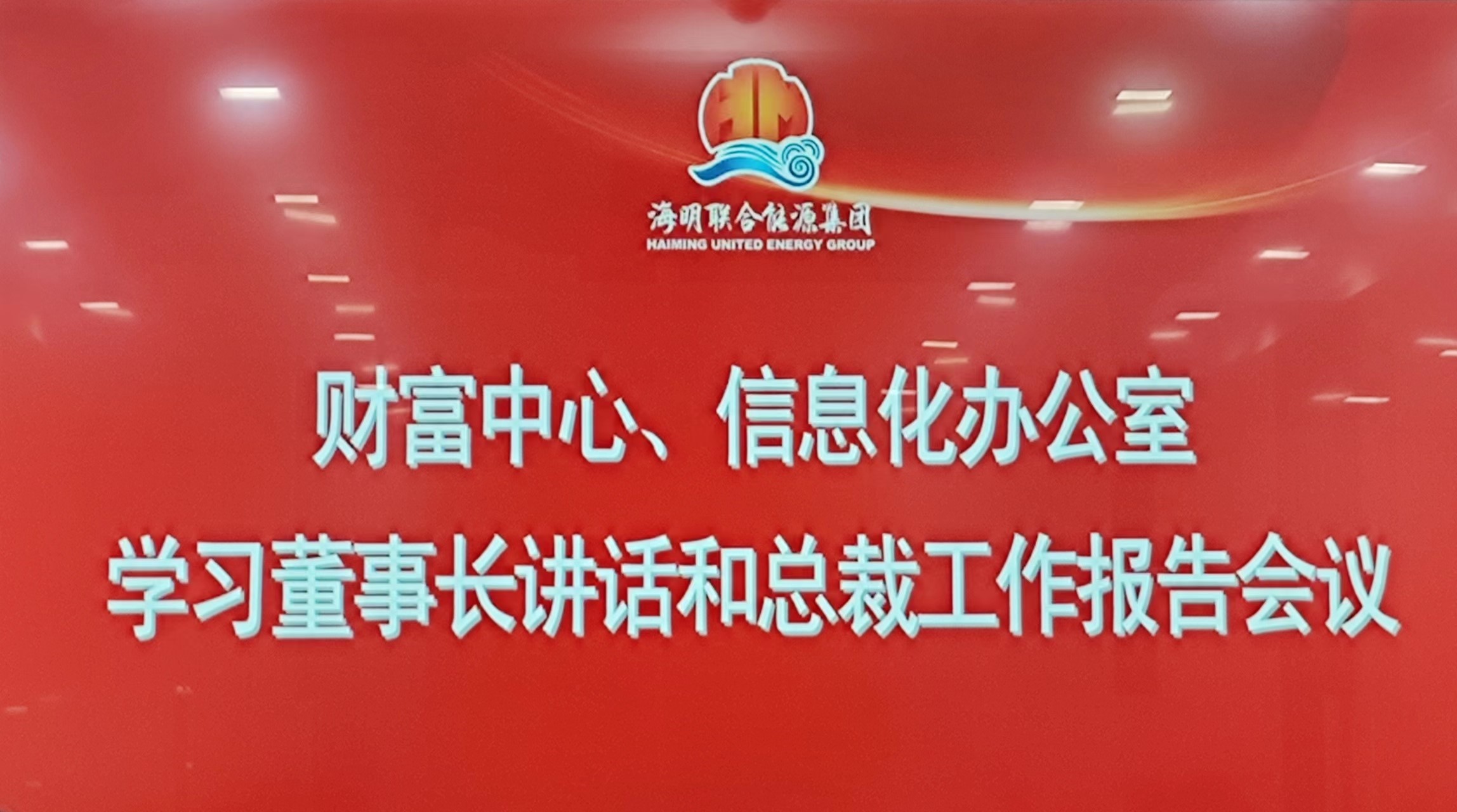 2023年8月25日下午13:30財富中心聯合信息化辦公室全體員工在萬達會議室召開學習了董事長講話和總裁工作報告專題會議。會議由集團副總裁高曉春主持,全體參會人員起立背誦“海明人精神”后,會議正式開始。