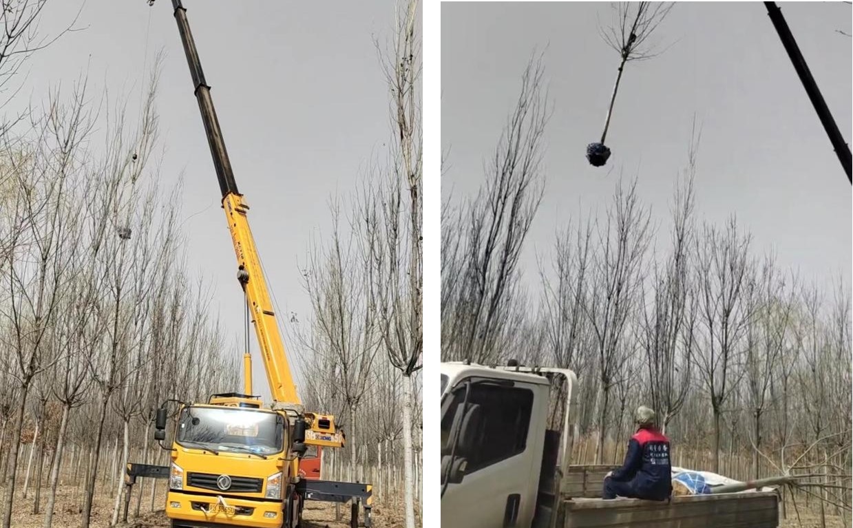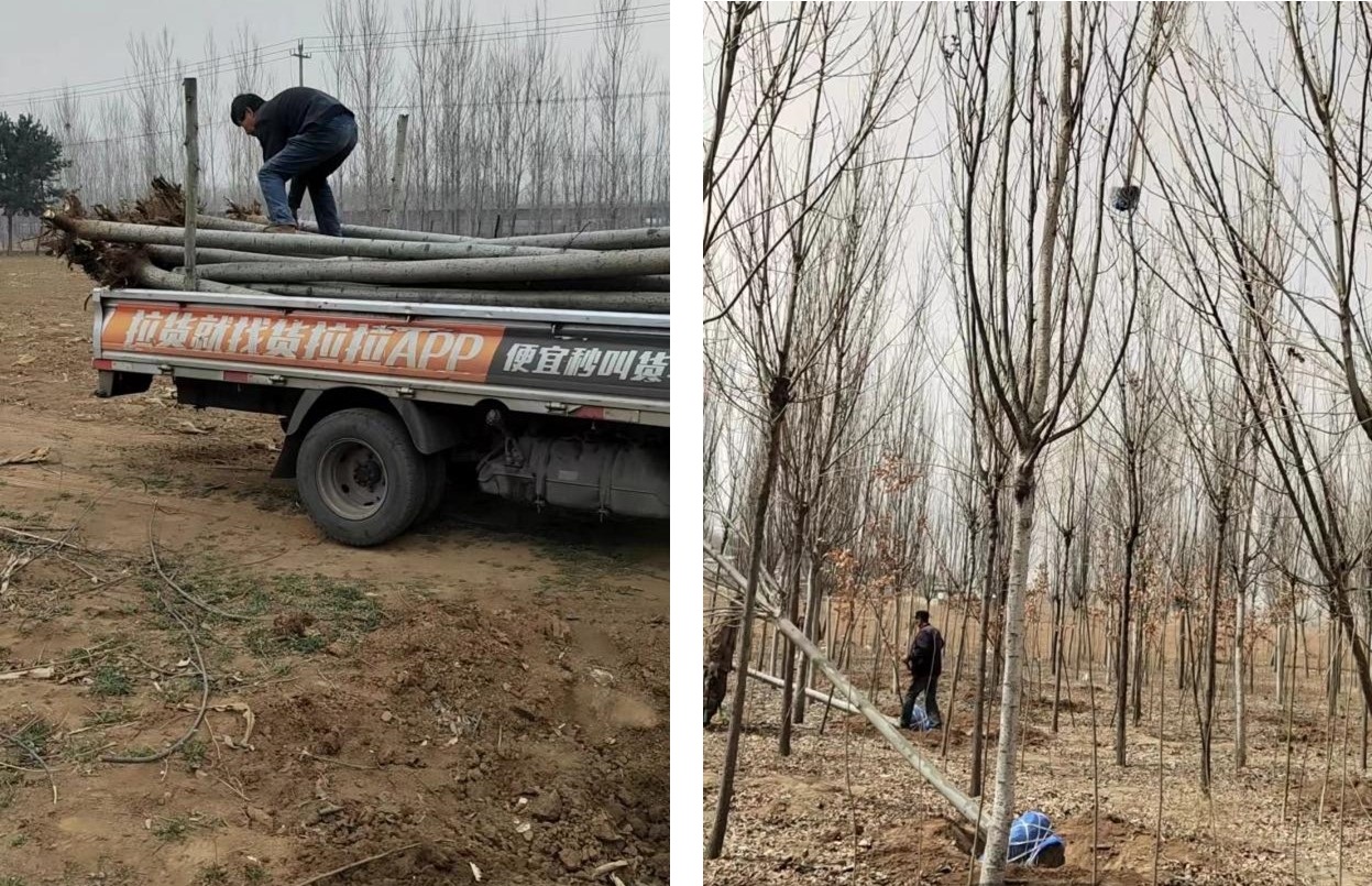 在接到采購任務后,采購組長王中立積極落實尋找貨源,在時間緊任務重的情況下多方聯絡,打了50多通電話,要求供應商提供清晰的苗木照片參考,后續不辭辛苦進行實地考察,除檢驗苗木規格,苗木病害、蟲害,為了避免假土球,而且在挖樹時均采取現場看守。為了提高苗木成活率,大型落葉喬木胸徑相同的選擇總高度低的苗木,部分苗木選擇現場進行修剪,采取苗木隨挖隨運方法,不僅提高成活率,更利于途中安全運輸。