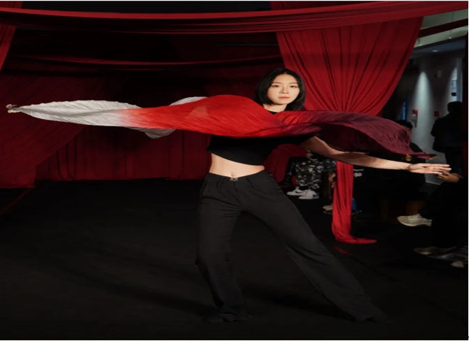 在聚光燈交織的夢幻秀場,服裝表演專業學生徐嘉奇宛如靈動星辰翩然而至。演繹舞蹈《纏》于秀場綻放光彩。