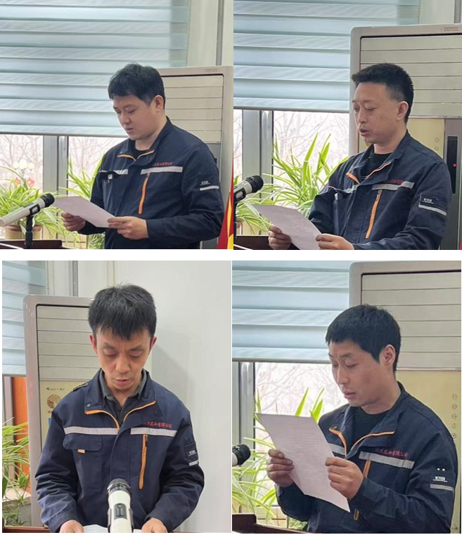 隨后,浩然實業公司安全員劉子健,浩然洗煤廠機電副廠長穆紅光,洗煤車間主任楊建武和車間副主任劉士利,就如何抓實現場安全生產管理和保證完成安全目標進行了表態發言,承諾將以“時時放心不下”的責任感抓安全、保底線;集團公司安委辦發放了《安全知識答題試卷》,測試和鞏固安全知識培訓學習成果;集團公司安委辦安全主管張全海宣讀了《董事長桑海明致全體員工的一封信》,號召全體員工以“人人為企業,企業為人人”的理念引領行動,將“我要安全”轉化為自覺行動。