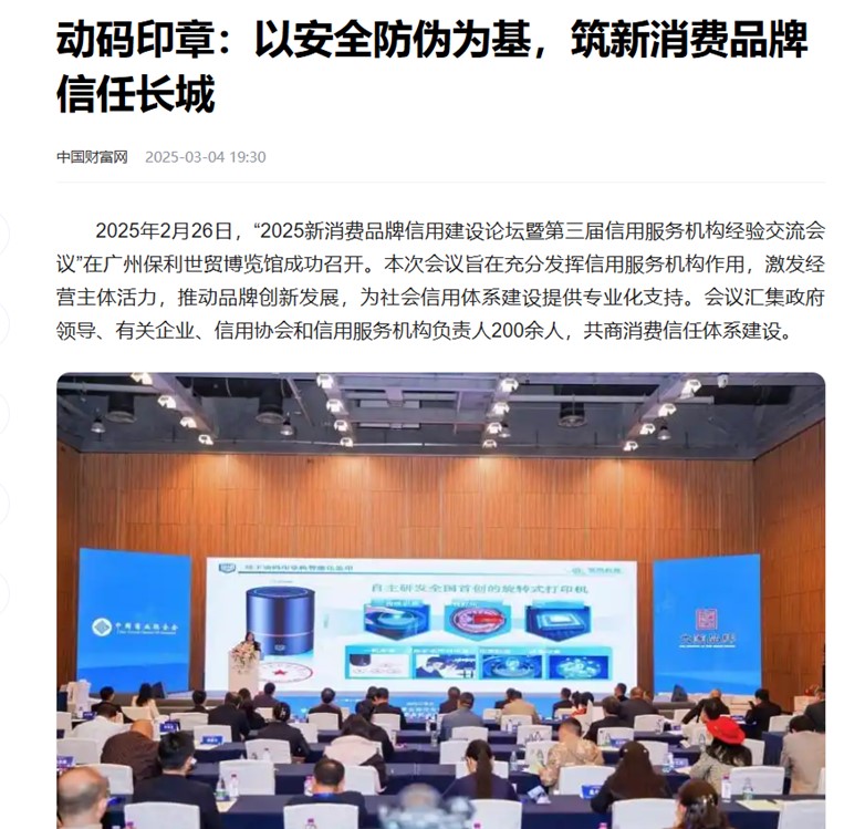 動碼印章在2025新消費品牌信用建設論上精彩亮相,吸引了眾多主流媒體的聚焦關注及新聞傳播。