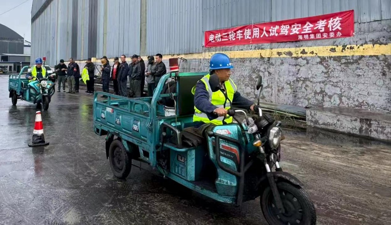 試駕考核現場,安委辦副主任陳英華親自指揮,嚴肅強調了考核紀律,明確了車輛檢查、安全裝備佩戴、平穩啟車、速度控制、轉向與彎道行駛、倒車操作、坡道駕駛等16項考核內容。經電動三輪車使用人推薦,確定擁有多年駕駛經驗的儲運部副總經理甘印同和海明工匠崔文生為試駕考官,在兩位考官的嚴格考核下,現場參與試駕的人員嚴肅認真,按照程序一絲不茍操作,有83名當場順利通過考核,另外2名在兩位考官的耐心指導下亦全部通過考核。85名電動三輪車使用人在眾人的注目下通過現場試駕考核,進一步增強了電動三輪車安全使用意識,提升了安全操作技能。