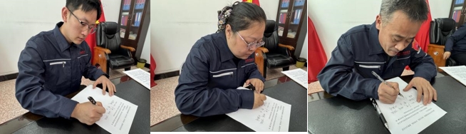 會議現(xiàn)場,與會的北方貨運(yùn)公司總經(jīng)理石堅(jiān)、優(yōu)陽選煤廠長王朝林、各單位主管安全副總經(jīng)理、安全環(huán)保檢查員,依次在《安全環(huán)保攻堅(jiān)行動承諾書》上鄭重簽字。承諾書滿是沉甸甸的責(zé)任和斬釘截鐵的決心:“全體安全環(huán)保管理人員,踐行海明人精神,彰顯攻堅(jiān)之姿;聚焦攻堅(jiān)要點(diǎn),筑牢風(fēng)險(xiǎn)防控之堤;主動協(xié)同作戰(zhàn),凝聚聯(lián)動攻堅(jiān)合力。”