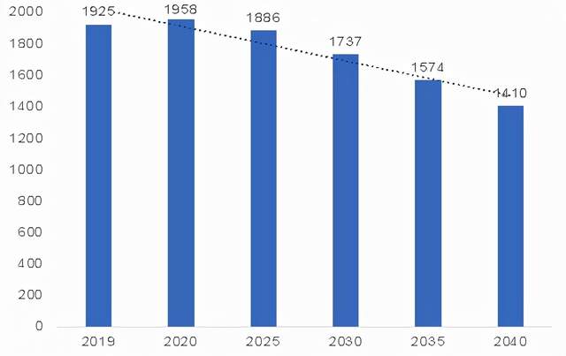 中國煤炭消費量變化預測(單位:百萬噸油當量)