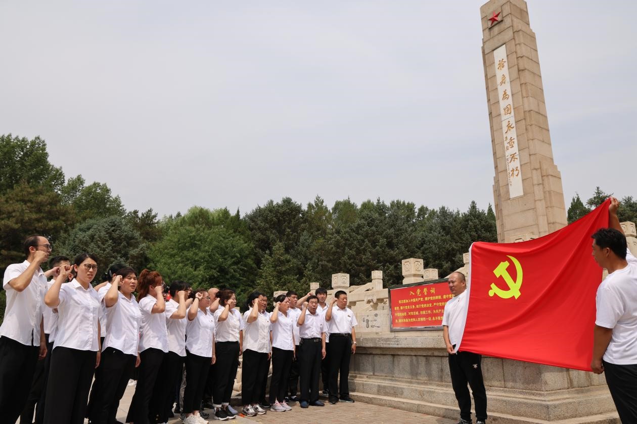 在隆化英雄廣場,全體黨員來到朱德委員長為董存瑞親筆題詞“舍身為國,永垂不朽”的紀念碑下,在集團公司黨委副書記王林成同志帶領下,面向黨旗高舉右手,莊嚴宣誓:“我志愿加入中國共產黨,擁護黨的綱領……”。鏗鏘有力的誓言回蕩在青松翠柏間,神圣而豪邁,初心永不忘。