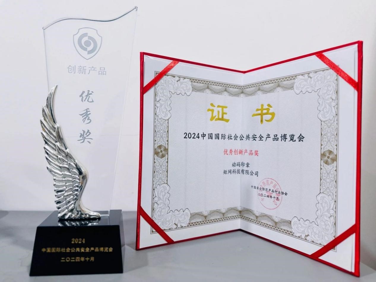 由中國安全防范產品行業(yè)協(xié)會主辦的2024中國國際社會公共安全產品博覽會暨智能與安全產業(yè)發(fā)展大會(以下簡稱安博會)10月22日在北京盛大開幕!矩網(wǎng)科技作為智能印章領域的領軍企業(yè),受邀攜自主研發(fā)劃時代的物電同源一體化智慧印章解決方案“動碼印章”參與本次展會。動碼印章系列產品憑借卓越的動態(tài)防偽技術成為展會亮點,一舉斬獲“優(yōu)秀創(chuàng)新產品獎”,不僅展現(xiàn)了矩網(wǎng)科技在智能印章領域的深厚積累與前沿探索,更為我國安防行業(yè)樹立了新的標桿。